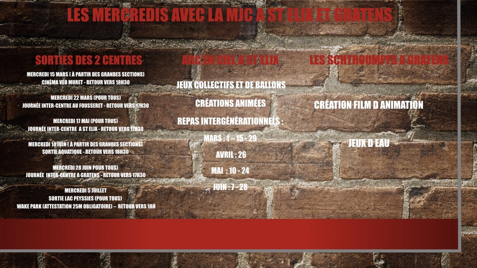 Voici le nouveau programme de nos centres de loisirs de St Elix et Gratens !